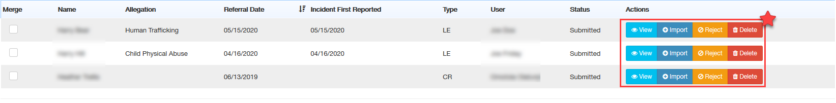 Step 3: To import a referral press the import button corresponding with the client you would like to add. From this screen you can also view, reject and delete referrals. (See fig. 1)
