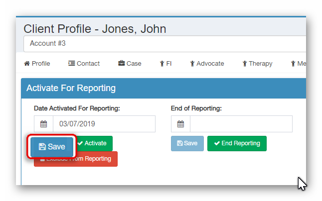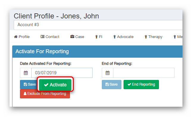 Activating a client for reporting, or setting the Activate For Reporting (AFR) date, tells the system to include that client in your reports as of the date you designate as the "Date Activated for Reporting" under the AFR Tab.
