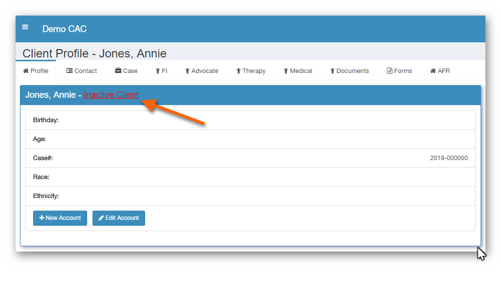 Note: If a client is marked as "Inactive" and returns to your agency for additional services for that case, simply mark it as active again.