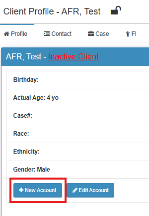 Note: If a client returns to your agency for services on a new case that is not relevant to any others in the system, then you will need to go to their client profile to add a new account.