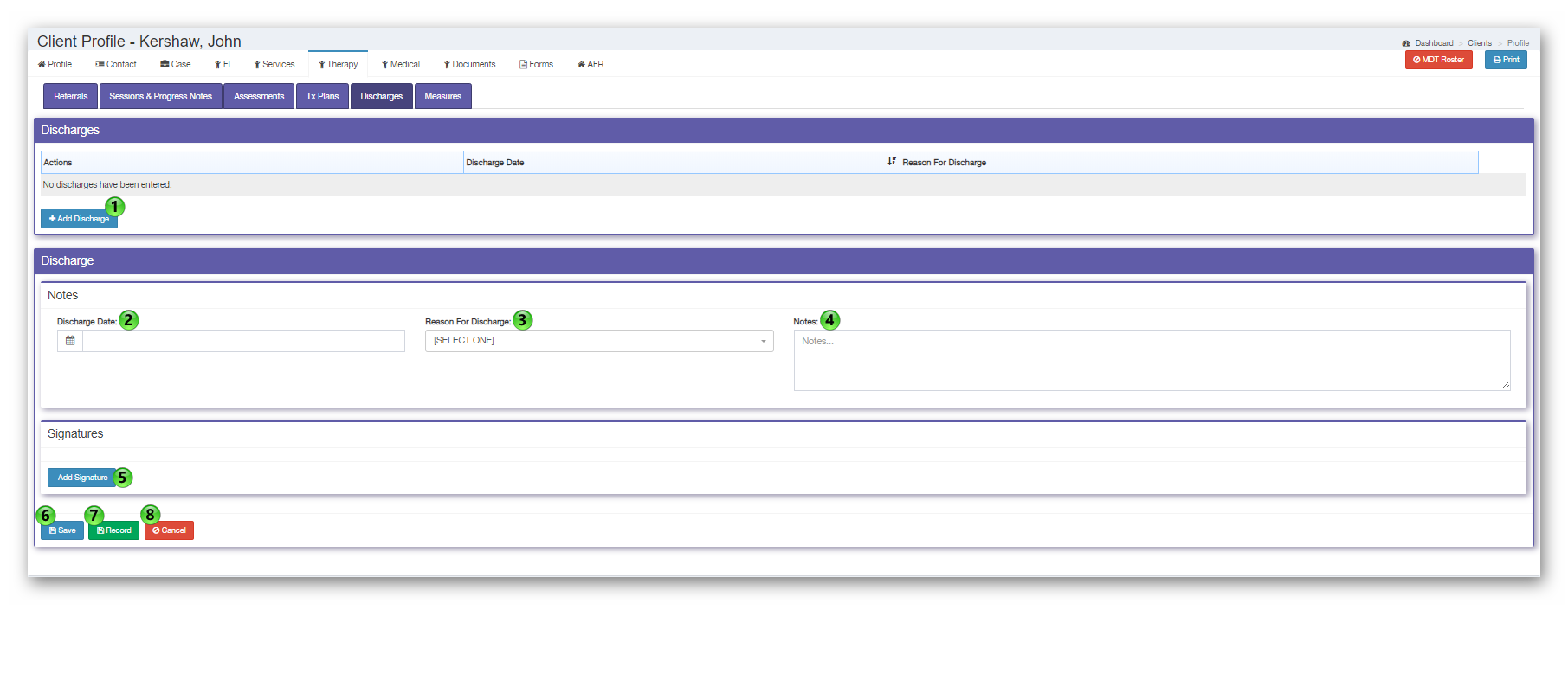 1. Client Name: This will automatically populate with the client's name based on the profile you are in. To choose a different client, you will have to navigate to their profile.