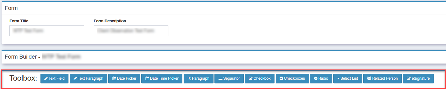 Step 4. After your page reloads, you are presented with the form builder. The form builder has multiple field options (in the Toolbox):