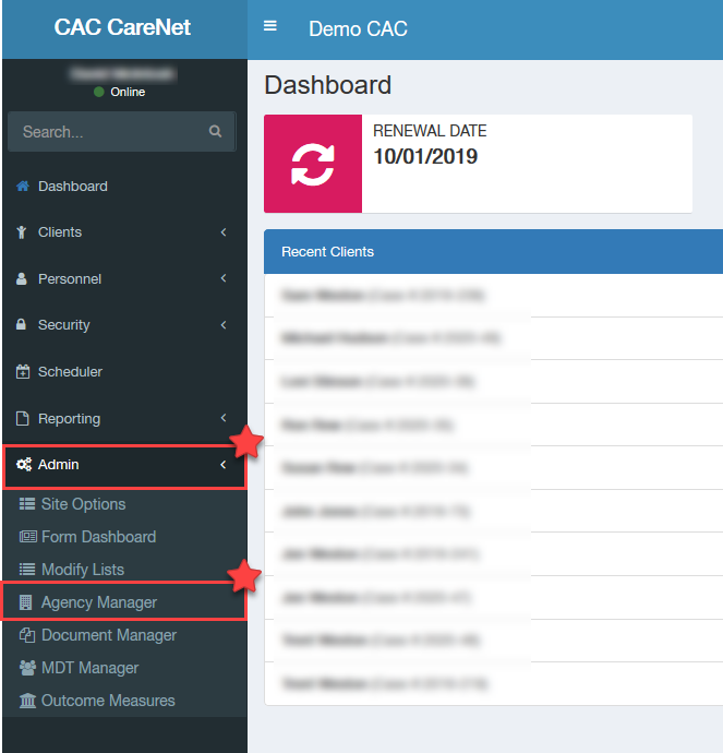Note: Depending on your permission set, you may not have access to the Agency Manager. If you receive an error message, please contact your local administrator.