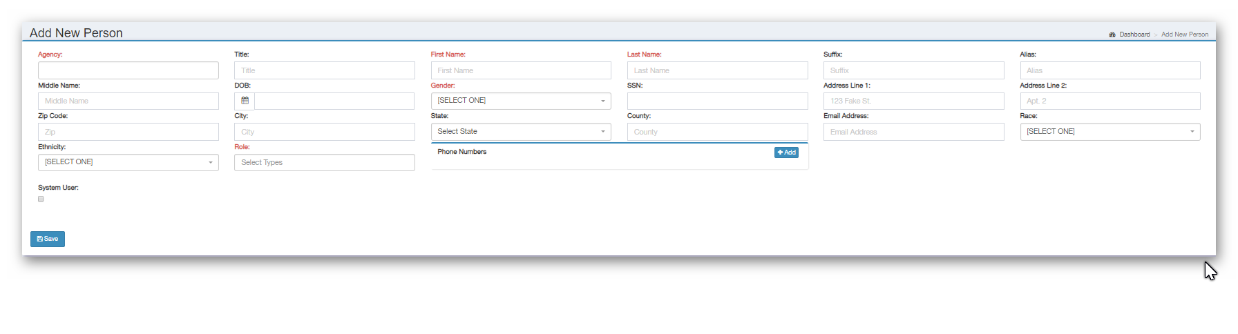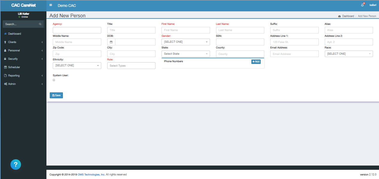 To add a person that will be a system user or making referrals through CareNet, click the "System User" box.